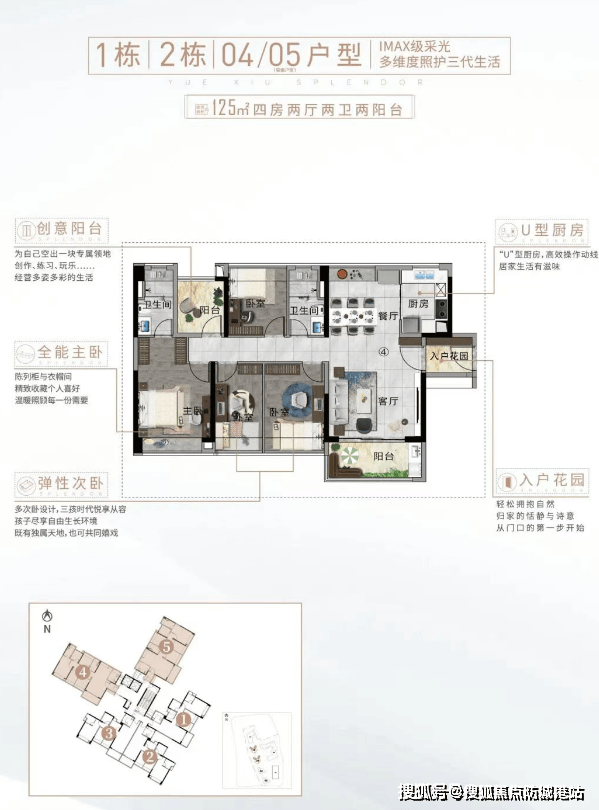 越秀星耀TOD推出的户型涵盖99㎡三室两厅两卫和125㎡四室两厅两卫两种。其中,99㎡户型采用了经典的竖厅格局,动静分区合理,配备双阳台设计,提升了生活的舒适度;而125㎡户型则有多开间朝南的设计,提供充足光照,并配备了入户花园和创意阳台,满足家庭个性化需求。