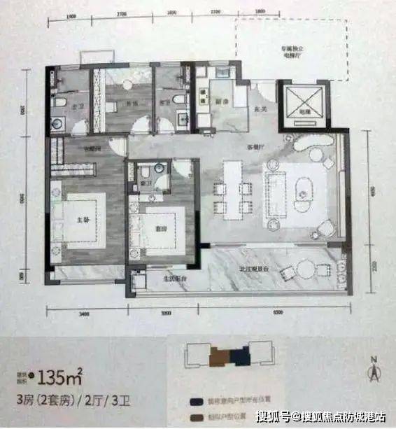 3室2厅3卫一梯一户1栋135㎡