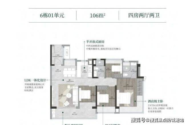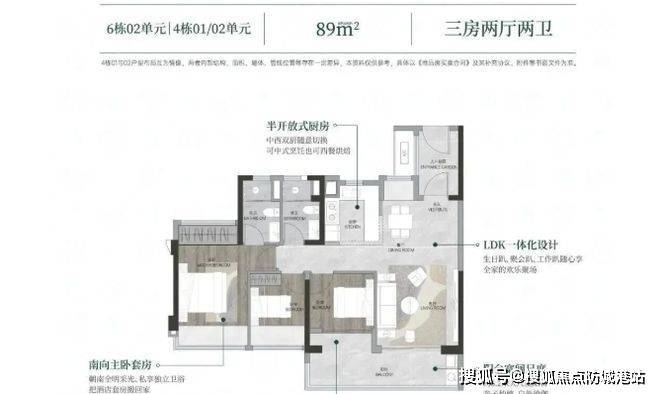户型设计很出彩,商品房位于地块西侧,6 栋 26 - 33 层住宅以 T5 风车型全南向户型规划布局。主打建面约 82 - 141㎡三至四房,全是新规设计。首期推的 88㎡、89㎡三房,以及 106㎡、108㎡四房,都是市面上比较缺货的爆款面积段。得房率基本超 100%,空间利用充分,居住舒适度高,无论是刚需还是改善型购房者,都能找到适合自己的户型。