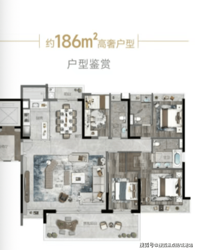 约186㎡——4房3卫:均价约3.6 - 4万/㎡,总价670 - 750万。独梯独户10米阳台三套间,尽显尊贵与奢华。超大的阳台,让你仿佛拥有了一个私人的空中花园,可以在这里欣赏美景、品茶读书,享受悠闲的时光。三个套间的设计,为家庭成员提供了更加私密和舒适的居住体验,彰显了高品质的生活格调。致电官方售楼处400-0688-602,优先获取优惠(官方售楼部)。