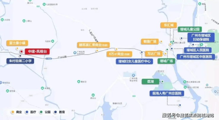 片区医疗配套也在快速完善中。除了规划中的科教城三甲医院外,周边已有广州市妇女儿童医疗中心(增城院区)、增城中医医院、南方医院增城分院(二期在建)等多家优质医疗机构,为居民提供全方位健康保障。