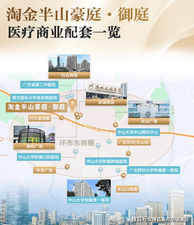 淘金半山豪庭·御庭所在的区域具有得天独厚的价值。周边不仅有丰富的历史文化遗迹,还有现代化的商业设施。这里是广州改革开放后的首个CBD,LV店、自选商场、星巴克等多个“广州首家”都诞生在这里。如今,繁华时尚依旧,友谊总店、丽柏广场、保利中环广场等大型高端商业环绕在侧,为居民提供了便捷的生活服务。