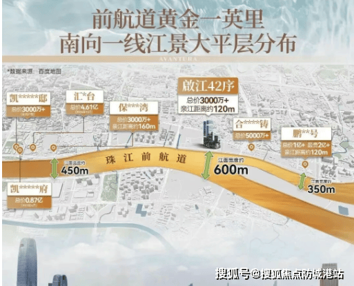 所有户型均以“无界拥江”为核心理念,打造270°环幕江景视野。项目距珠江仅约110米,高层单位可一览约5000米珠江两岸壮阔画卷: