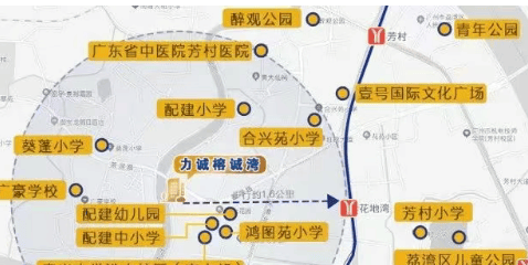 尽管项目距离最近的地铁口花地湾站步行距离约 1.9 公里,但交通便利性依然可圈可点。楼下设有茶滘总站,106 路公交 3 站就能到芳村站,对于在越秀上班的朋友而言,十分友好。而且,项目距离楼盘 600 米左右有个远期规划的 25 号线的汾水站,后续建成后,一个站就可到达花地湾,大大减少了通行时间。