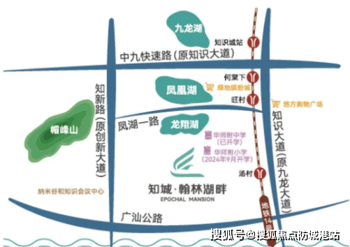 知城翰林湖畔距离地铁14号线知识城支线旺村站大约1300米,步行较为不便,但可以通过电动车等交通工具轻松到达。此外,项目周边有多条快速路和高速公路,如创新大道、永九快速(建设中)、花莞高速知识城出口、广河高速、华南快速干线以及从埔高速(建设中),使得自驾出行非常便捷,能够快速连接到科学城及天河等核心区域。