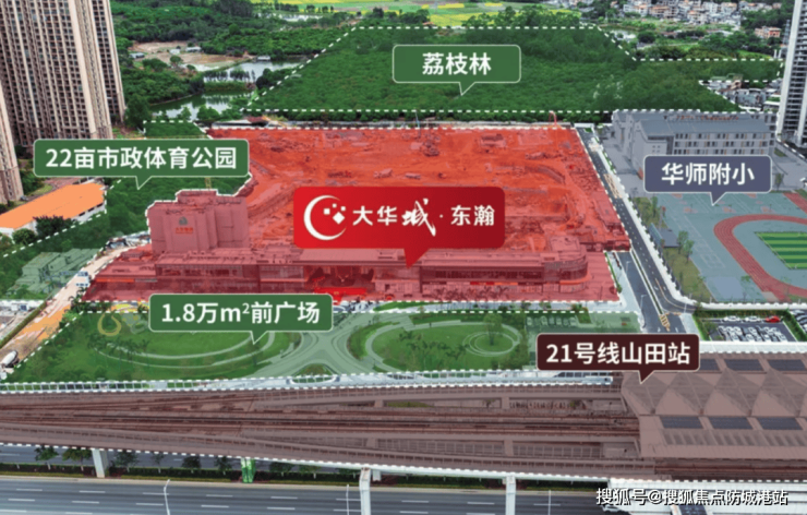 「大华城东瀚」位于广州东部增城区,这里是大华集团重点布局的区域。大华集团在此打造了包括大华城・东郡、大华城・东瀚、大华朱村村旧改、大华山田村旧改在内的多个项目,形成连片开发,未来将建成全国第八个平方公里新城 —— 大华城。