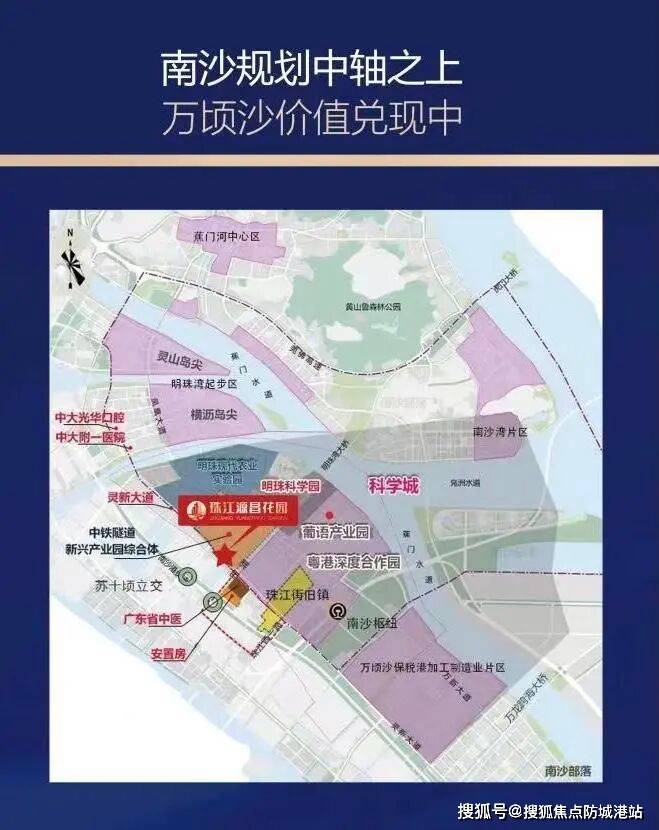 项目左手承接南沙 CBD 商务经济辐射,众多世界 500 强企业陆续进驻,有望崛起成为下一个珠江新城,带来强大的经济活力与就业机会。右手拥抱南沙枢纽商圈,经济辐射粤港澳及珠三角等地,千亿投资蓄势待发。中铁建、中交等 500 强企业总部以及中科院、智能汽车等总部经济的显现,加速企业人才流入,为区域房地产发展注入强劲动力,未来发展前景广阔。