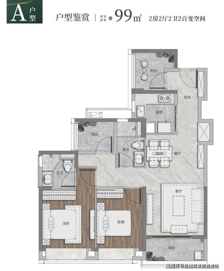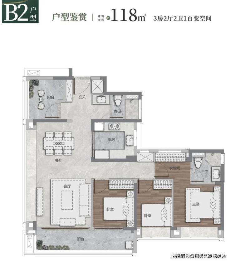 100㎡三房:南北对流双阳台,主卧270°转角飘窗,直面珠江入海口,空间利用率超92%;