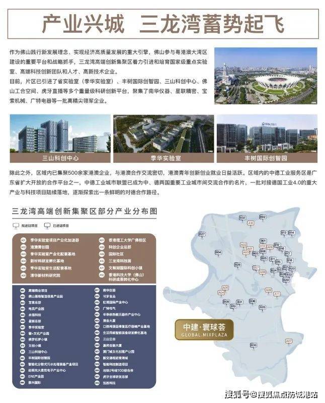 三龙湾作为佛山龙头,着力引进和培养国家级重点实验室、高端科技创新团队和人才、高新技术企业,以超高规格规划实现高端创新集聚,目前,季华实验室(省实验室)、虎牙全球研发总部、阿里云创新中心、欢聚集团等重大产业项日已相继落户。