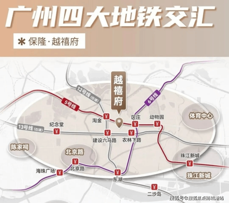 项目交通优势显著,距离地铁 5/6 号线区庄站直线距离仅 500 米,步行几分钟即可抵达,乘坐地铁可快速直达珠江新城、北京路、天河路等核心商圈,通勤高效便捷。在建的地铁 12 号线淘金站和 13 号线农林下路站,预计 2025 年年底开通,届时将实现四地铁环绕,进一步拓展出行半径,畅达广州各区域。