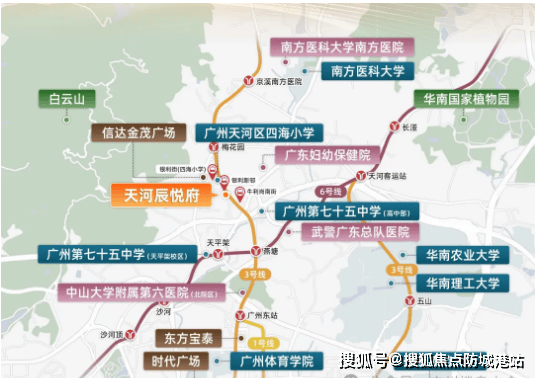 天河辰悦府坐落于广州新中轴天河北板块,具体位置位于西派天河序、天河和樾府两大豪改盘南侧约300米处,妥妥的天河核心居住区,享受板块成熟的配套资源与发展红利。项目所处位置交通网络发达,双地铁环绕,出行便捷度拉满。
