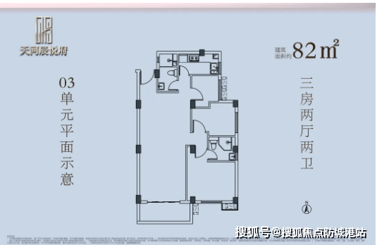 85㎡三房两厅两卫:东北向布局,户型结构与82㎡户型相近,空间尺寸略有优化,居住舒适度更高。主卧空间宽敞,可摆放大床及衣柜,公卫干湿分离设计,提升使用便捷性。该户型适合对空间有一定要求,且注重居住实用性的家庭。