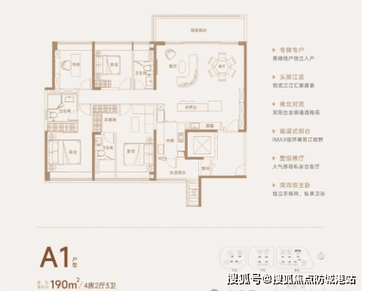 特色大户型方面,190平方米户型配备双主套卧室,主卧与次主卧均带有独立卫生间与衣帽间,功能分区精细,保障了居住的私密性与舒适度,适合多孩家庭或三代同堂居住。257平方米大平层则是项目高端户型代表,空间开阔,布局合理,部分户型可享一线江景,搭配豪宅级装修标准,尽显居住品质,适合追求极致舒适与身份象征的高端改善人群。