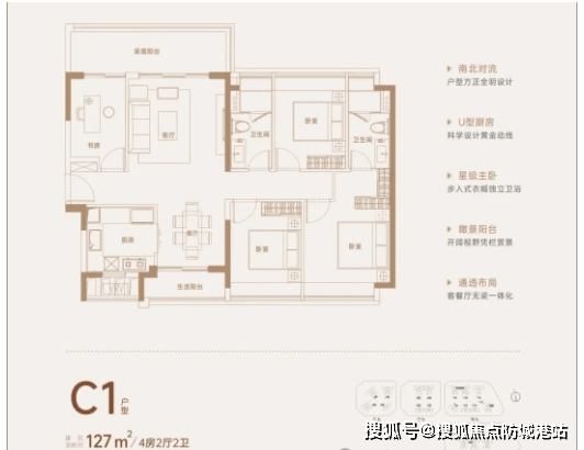 主力户型方面,102-142平方米四房户型为项目主推,涵盖4房2厅2卫、4房2厅3卫等格局,部分户型配备观景阳台、独立书房、步入式衣帽间等功能空间,满足家庭日常居住与储物需求。其中129平方米“王牌四房”备受青睐,采用南北双阳台设计,南北通透,通风采光效果极佳,客餐厅一体化布局,拓展了公共活动空间,无论是家庭聚餐还是亲友来访,都能轻松容纳。
