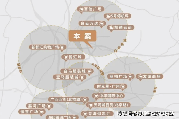 万科·云都荟所处的位置,堪称广州中心城区的“黄金十字路口”。项目距离越秀区政治中心仅800米,与广东省政府直线距离约3.2公里,周边政商资源高度集聚,形成强大的高端资源聚合效应。更为难得的是,项目5公里范围内汇聚了六大成熟商业中心——淘金商圈、北京路、上下九步行街、白云新城、环市西商圈及广州火车站商贸区,构建起一个覆盖全龄段、全业态的超级商业矩阵。
