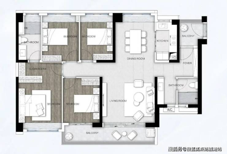 主卧套房设计,超大阳台采光更佳