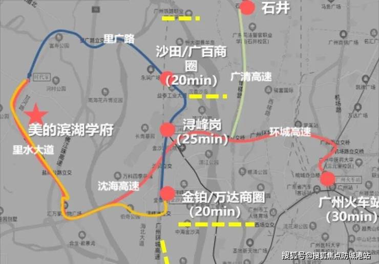 美的滨湖学府出门即上主干道,半小时内可畅达广州各大主城区。具体而言: