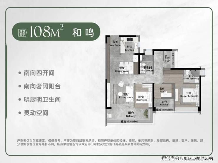 户型选择:108-180㎡南向四房,适配首置到终极改善需求