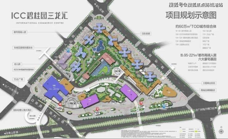 碧桂园三龙汇是一座约 60 万㎡的 TOD 城市复合体,引入了国外先进的 HOPSCA 模式,融合 6 大业态,包含:180米的写字楼、国际轻奢品牌酒店、立体艺术公园、国际购物中心、休闲会所、都市高端人居等等。