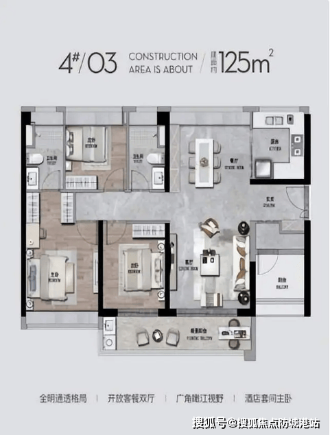 户型设计:高使用率与舒适江景空间