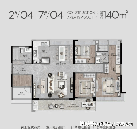 户型设计在满足实用性的基础上,注重景观体验和生活舒适度。无论是家庭日常生活,还是休闲社交活动,都能提供宽敞、明亮、灵活的空间。每户均可享受无遮挡江景和充足采光,真正实现“居住与自然景观的无缝衔接”。