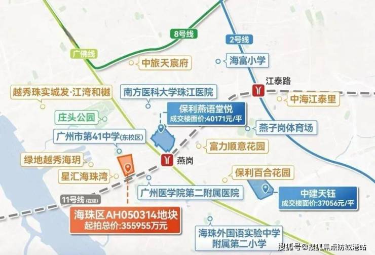 2. 畅达全城:项目交通优势显著,周边双地铁环绕。“换乘之王”广佛线燕岗站距项目约400m,广州首条黄金环城线11号线棣园站约250m。这两条地铁线直接打通琶洲、天河、海珠西和荔湾等区域,7站可达南站,7站可至琶洲,轻松链接全城,让业主通勤出行便捷无忧,同时也能虹吸广佛优质资源。