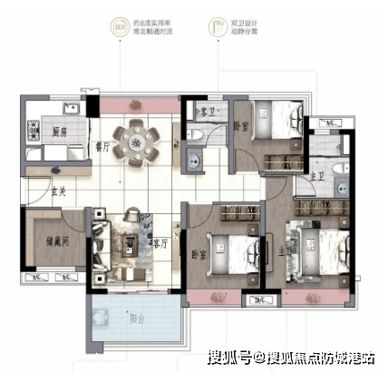 改善型阔绰户型:132㎡的 4 房 2 卫户型,四开间朝南,采光充足。主卧南北对流双飘窗,打造宽敞舒适的套间。约 6.5 米阳台,可欣赏头排无遮挡山景,为您带来极致的景观享受。入户花园的设计,让您进门就能卸下疲惫,感受到家的温馨。