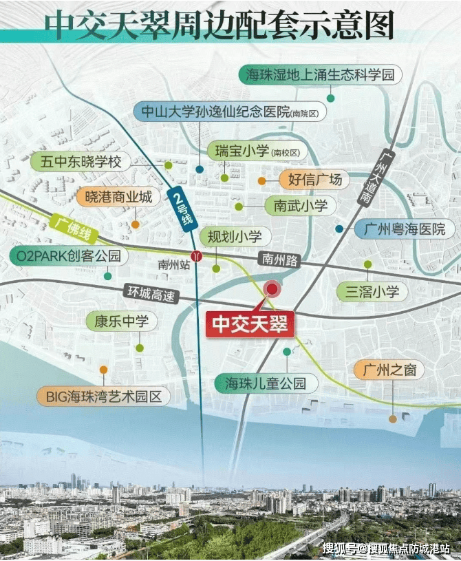 中交天翠位于广州市海珠区,由中交地产和交投置业联合开发。项目占地面积约6.7万平方米,计容建筑面积约15万平方米,是近年来海珠区少有的大型居住社区之一。凭借其优越的地理位置、丰富的教育资源以及卓越的生活配套设施,中交天翠成为了追求高品质生活的家庭的理想之选。