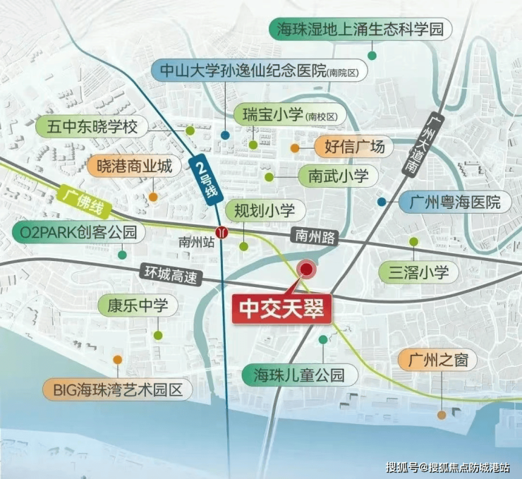 中交天翠地理位置极为便利,距离地铁2号线和广佛线交汇的南洲站仅约500米,周边还有广州绕城高速和广州大道,形成了四通八达的交通网络。尽管项目周围有多条主干道环绕,但开发商通过三重降噪体系有效缓解了噪音问题,确保居民享有安静舒适的居住环境。