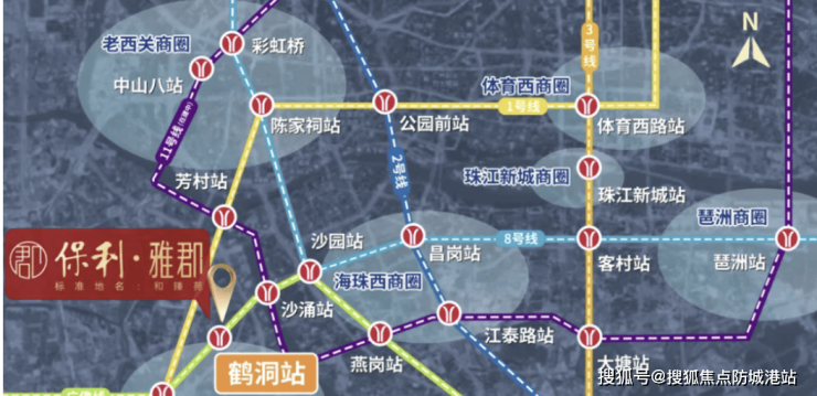 保利雅郡在交通方面具有显著优势,紧邻广佛线鹤洞地铁站,距离仅约100米,实现真正的地铁上盖优势。通过地铁可快速连接海珠、琶洲、越秀及体育西等核心区域,日常通勤和商务出行便捷高效。同时,项目周边主要道路包括鹤洞路、广船路及鹤洞大桥,驾车可快速通达广州中心城区和珠江新城,为业主提供灵活多样的出行选择。