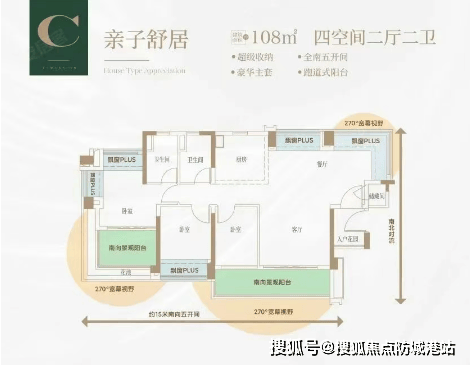 所有户型均为四/五开间朝南设计,主卧配备270°环幕飘窗,增加了采光面积,提升了居住品质。