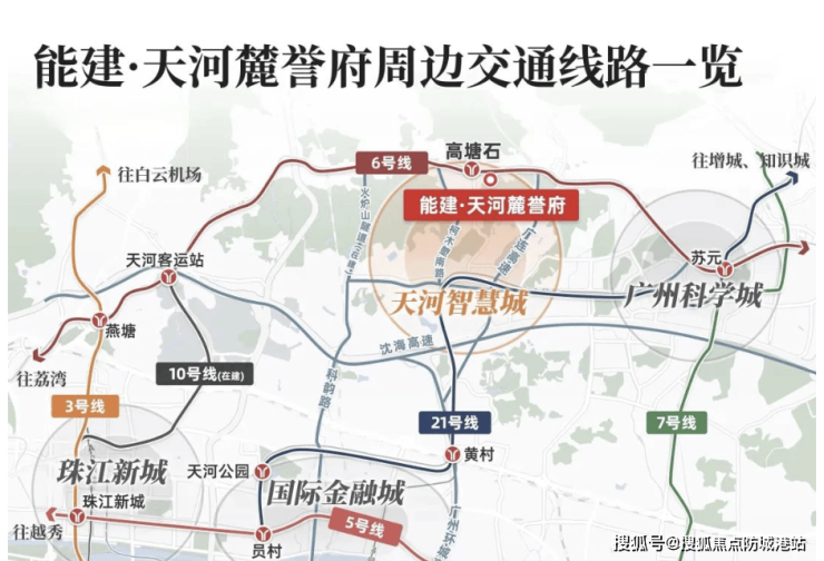 在交通层面,能建天河麓誉府具备较为突出的综合通达能力。轨道交通方面,项目步行范围内可接驳地铁6号线站点,通过换乘可快速联通珠江新城、金融城及琶洲等城市核心功能区,为日常通勤与商务往来提供稳定保障。