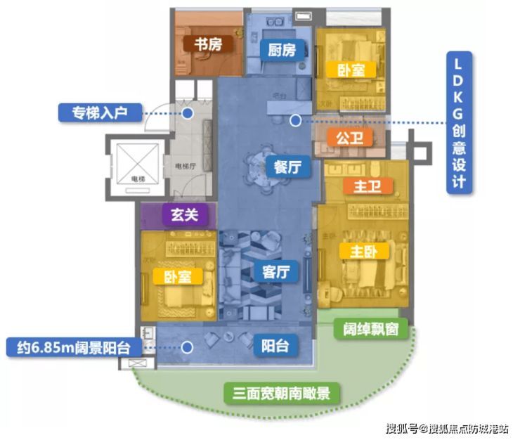 125㎡卓越四房:享受专属归家礼遇,约6.8米宽景阳台,LDKG布局增强厨厅多元互动。