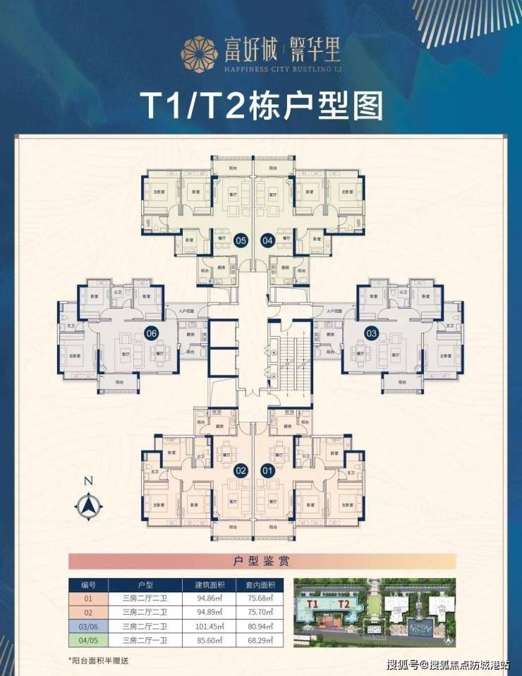 主力户型涵盖 85㎡三房、94.86㎡三房、101.45㎡四房,格局方正,采光通风良好,空间利用率高,适配刚需、改善家庭居住需求。