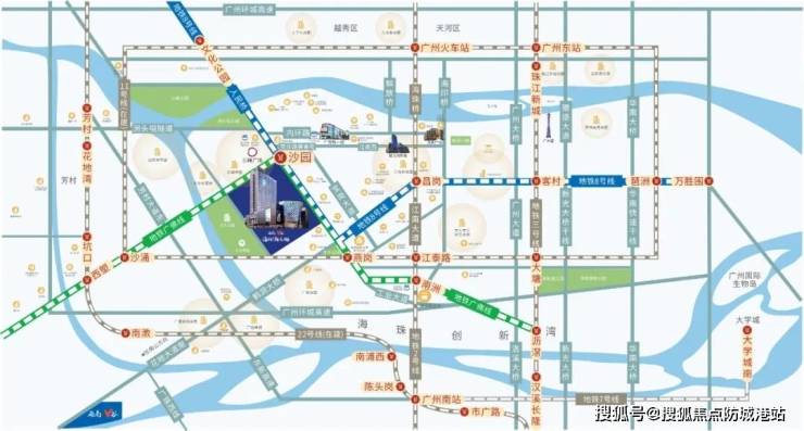 双地铁交汇:紧邻8号线和广佛线,形成便捷的城市交通网络,方便居民快速抵达广州和佛山两大城市的中心区域。作为连接海珠区“一区一谷一湾”战略发展布局与荔湾区重点开发区域(如广钢新城)乃至佛山千灯湖等地的重要节点,具备显著的战略意义。