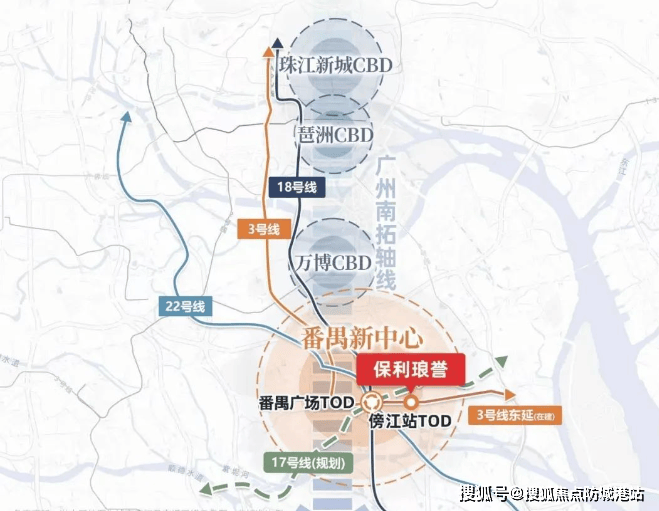 项目距离地铁3号线东延段傍江站直线距离约500米,并且无需换乘即可直达珠江新城等重要区域。此外,一站即达番禺广场站,这里有地铁3号线、18号线、22号线、3号线东延段、17号线(规划中)五轨交汇,极大地方便了居民的出行。