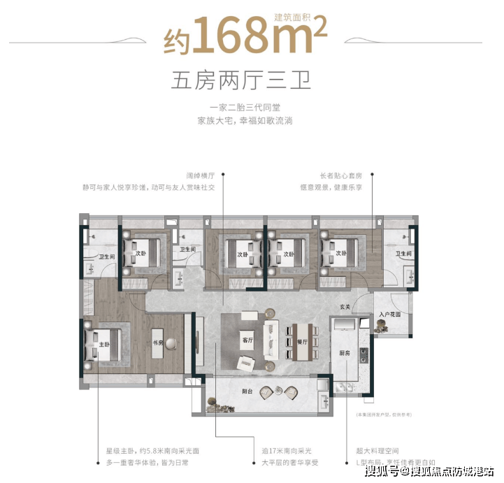 项目提供的户型多样,涵盖了89-168㎡的三至五房,适应不同的家庭需求。其中,89㎡三房两厅两卫适合刚需家庭,总价仅170万起;而168㎡五房两厅三卫则更适合追求高品质生活的改善型客户。每个户型均采用了LDKB一体化空间设计,使用率约为81%,并配备了一系列现代化家居设备,提升了居住舒适度。
