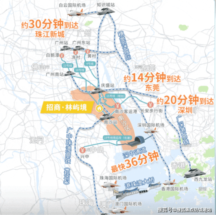 招商林屿境位于南沙区横沥岛,紧邻地铁18号线横沥站,步行距离仅约350米。该站通过18号线连接广州市中心各大商务区,如万博商务区、琶洲、珠江新城等地,通勤时间舒适便捷。此外,未来18号线还将延伸至珠海、中山,进一步增强了区域间的联系。