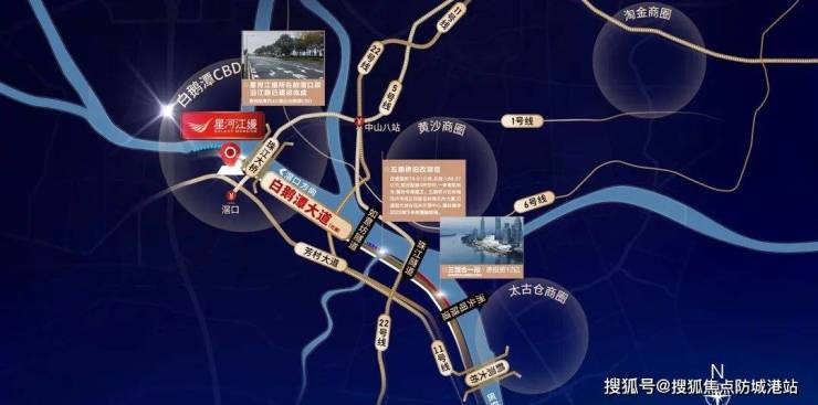 星河江缦位于荔湾,交通便捷,约 750 米即达 5 号线地铁滘口站,30 分钟直达珠江新城,白鹅潭未来将有超 10 条地铁线路,目前广佛线等多条线路已开通,10、11 等线路在规划或建设中。自驾通过芳村大道 10 分钟到白鹅潭 CBD 核心,未来经白鹅潭大道约 4 公里达腹地,如意坊隧道通车后出行更快捷。生活配套方面,太古里已签约进驻,三馆合一项目明年落成,步行约 900 米到雅诺广场,周边有多家三甲医院,全维资源满足生活需求。