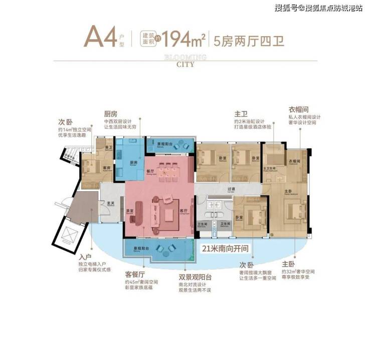194㎡五房三套间作为珠江花城最高级的产品,一个词形容那就是“碾压”。该户型位于29栋,数量极少,产品总数仅29户,非常难得!这个产品东南望中央园林,北向阳台低层望园景,中高层望山体公园,双重叠景。