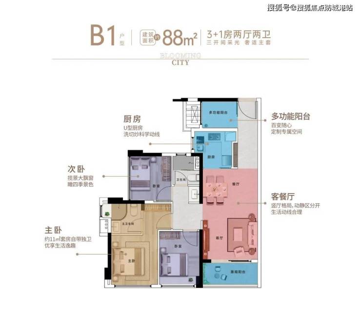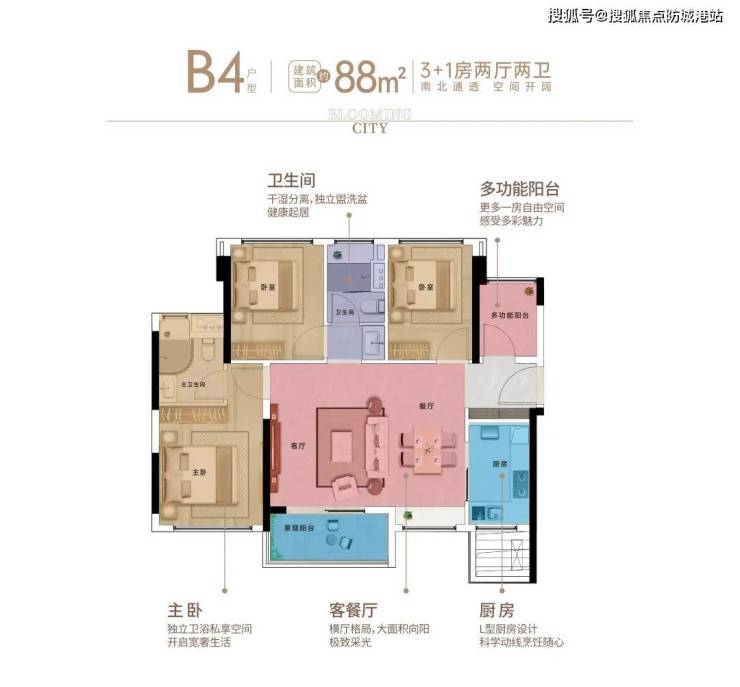 “断货王”建面约88㎡3+1房竖厅户型,餐客一体设计,动线合理,既能安心烹饪,也能随时切换成家庭欢聚厅模式,不浪费一丝空间。