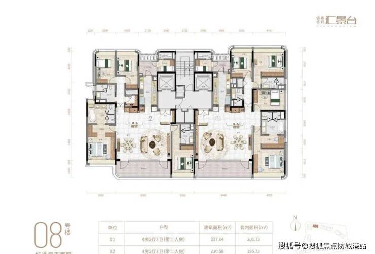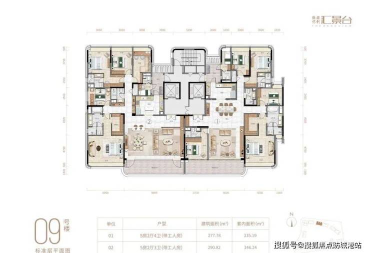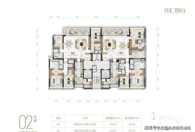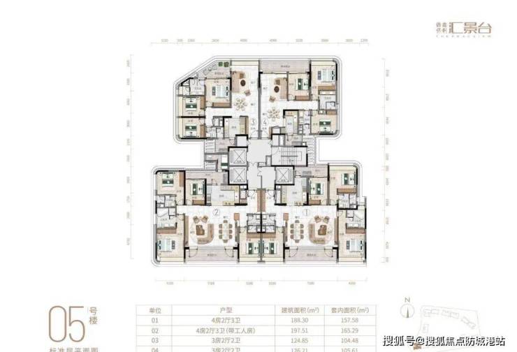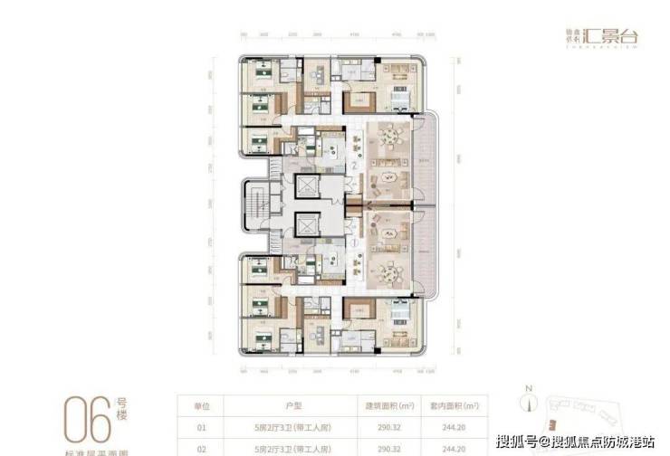 住宅产品的核心竞争力,最终落脚于室内空间的实用性与体验感。侨鑫·保利·汇景台提供8类户型,面积区间为123至352平方米,主力产品集中在124–290平方米三至五房,实用率稳定在82%–84%。这一数据在广州同类型豪宅中处于合理区间,反映出开发商在公摊控制与品质投入之间的审慎平衡。