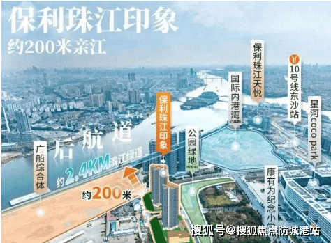 『保利·珠江印象』所在区域是广州珠江后航道的重要节点,规划对标世界级港湾码头,滨水一线以公共功能和开敞空间为主,致力于打造“东沙国际商贸港、产城协同活力湾”。区域内规划有医药健康产业创新示范区、高端滨水休闲旅游体验地和生态宜居品质生活理想城。项目本身临近8万方滨江水港,享受广州唯一的世界级内港湾美景,为居民提供了一个宁静优美的生活环境。