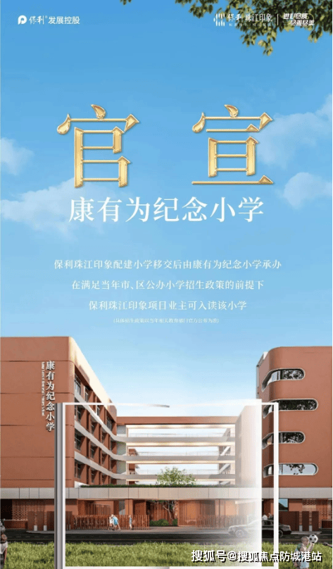 『保利·珠江印象』所在的区域教育资源丰富,项目自身配建了一所6班幼儿园和一所24班的小学,办学主体为康有为纪念小学,上学就在家门口,方便快捷。此外,项目周边还有省实广钢校区第一小学部、省实广钢校区第二小学部、华师附小等多所学校,以及真光实验中学、东沙博雅实验学校等中学,形成了完整的教育链条。初中阶段可通过摇号进入西外、真光、省实广钢等名校就读,确保孩子们从小学到中学都能接受高质量的教育。