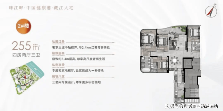 建面255㎡四房两厅三卫,分为东南向阅江户型与舒适居家户型,部分房源可享江景视野,功能分区清晰。东南向的阅江户型是这个面积段的热门选择,推开窗户就能看到壮阔的江景,日常居住的幸福感直接拉满。舒适居家户型则更注重空间的实用性,每个功能区都规划得非常合理,适合追求温馨居家氛围的家庭。