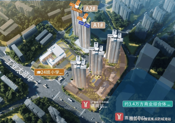A5:项目为双地铁上盖,50米直达燕岗站(广佛线+11号线),步行6分钟可达。广佛线可直达荔湾、佛山,11号线(预计2026年底开通)为环线,换乘便捷。7站可达珠江新城,8站直达琶洲,地铁通勤时间约20-30分钟。自驾可接入工业大道、内环路,30分钟通达三大CBD,周边还有13个公交站点、28条公交线路,出行方式多样。
