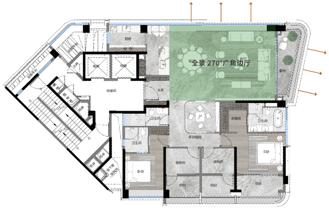 高端户型,225㎡至261㎡大平层,布局灵活,动静分区合理;