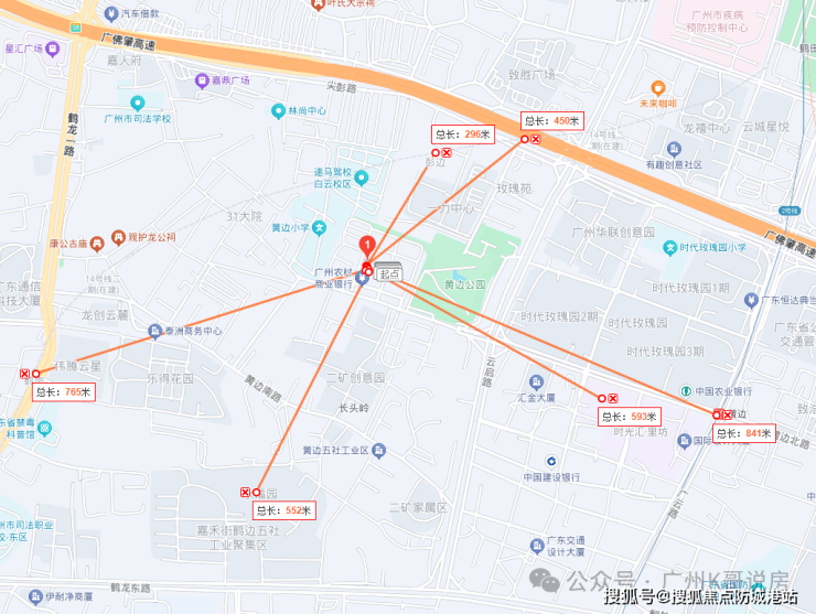 项目构建了双地铁 + 双有轨电车 + 4 纵 5 横城市路网的立体交通体系,可实现 10 分钟通达白云核心区,30 分钟覆盖广州中心城区。轨道交通方面,项目距离地铁 2 号线黄边站直线距离仅 750 米,步行 8 分钟即可抵达,通过 2 号线 3 站可达白云新城,可直达江南西、广州南站等核心商圈与交通枢纽,1 站即可换乘嘉禾望岗站,接驳地铁 2/3/14 号线,快速通达广州全市。在建的地铁 14 号线二期彭边站距离项目直线距离仅 300 米,未来开通后可实现家门口直达地铁,14 号线二期全线贯通后,可快速通达广州火车站、北京路等核心区域,直达珠江新城 CBD。项目周边还覆盖黄埔有轨电车 1 号线、2 号线,可无缝衔接地铁线路,解决短途通勤与出行需求。自驾出行方面,项目紧邻空港大道、白云大道等城市主干道,4 纵 5 横路网可快速接入广园快速路、华南快速干线等高速路网,10 分钟可达白云新城核心区,25 分钟可达珠江新城 CBD,30 分钟可达白云国际机场,全面满足业主日常通勤、商务出行、休闲出游等各类出行需求。