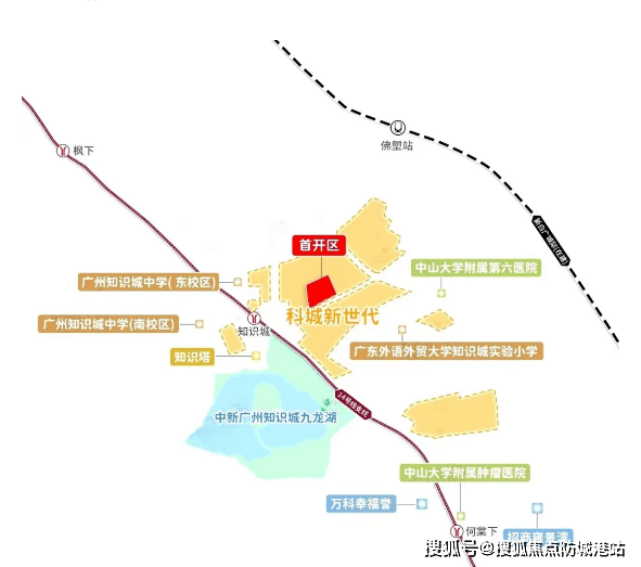 项目距离地铁14号线知识城支线“知识城站”约800米,步行可达,真正意义上的地铁上盖生活圈。通过该线路仅需4站接驳21号线,7站即可直达天河智慧城、珠江新城等核心商务区,快线模式下最快约35分钟便可抵达市中心,极大缩短了空间距离带来的心理隔阂。