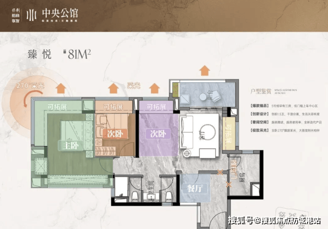 场景化描述: 在寸土寸金的中心区,每一平米都至关重要。中央公馆的户型实现了“空间魔术”,让约82㎡做出媲美市面上90㎡的实用三房,约110㎡实现奢阔的四房两卫,使用率普遍超过100%,这在近年同面积段新产品中堪称标杆。